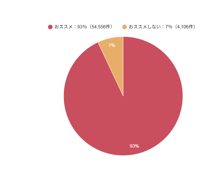 ご覧の通り、このゲームをプレイした全体の93%(54,556件)はおススメと評価しており、プレイした方の大多数が『面白い』という印象を抱いていることが分かります。